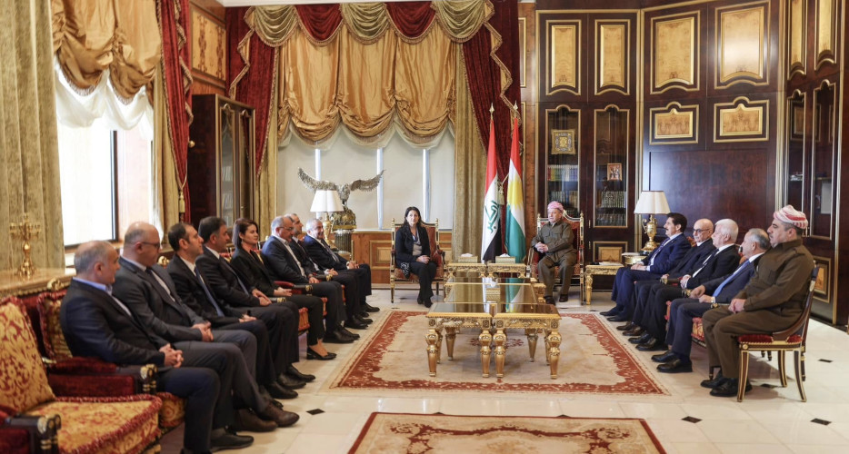 استقبل مسعود بارزاني، رئيس الحزب الديمقراطي الكوردستاني، اليوم الأحد، في مصيف صلاح الدين، وفد إمرالي برئاسة بروين بولدان وسري سرييا أوندر. وخلال اللقاء، استعرض الوفد رؤيته حول الأوضاع السياسية وعملية السلام في تركيا، كما نقل تفاصيل ونتائج لقاءاته مع عبد الله أوجلان، بالإضافة إلى مضمون رسالته إلى بارزاني.