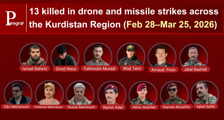 Peregraf — A sustained wave of drone and missile strikes across the Kurdistan Region of Iraq over the past 26 days has reportedly killed at least 13 individuals—including Peshmerga personnel, security officers, and foreign military staff—while leaving approximately 50 others wounded. The strikes have also resulted in material damage to civilian residences and infrastructure.