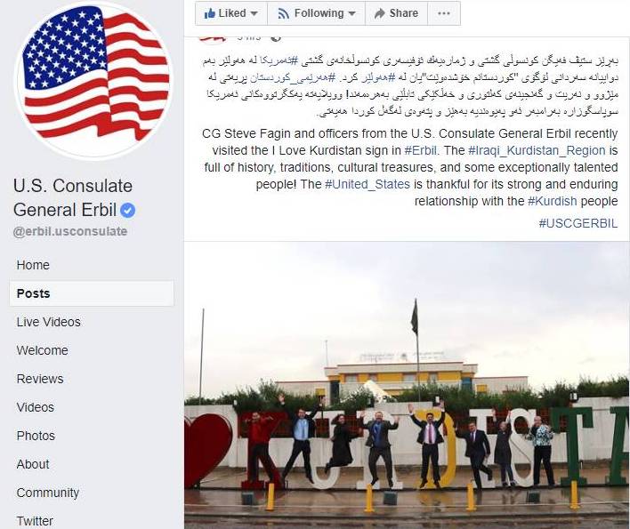 The US Consulate-General in Erbil posted this message on their own Facebook page