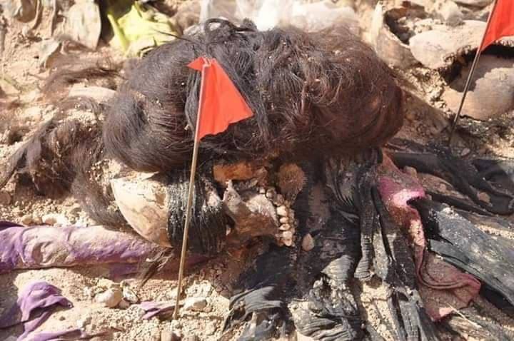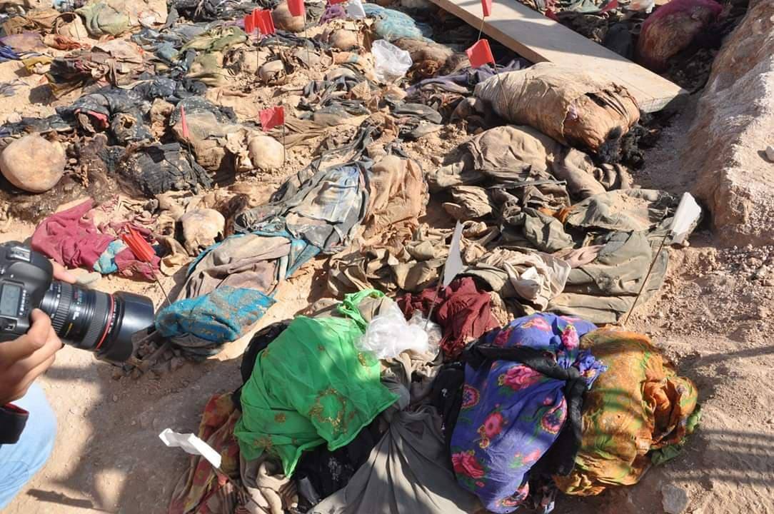 The mass grave of Kurdish women and children has been exhumed on July 27, 2019. Photo: Fouad Osman has sent to Peregraf.