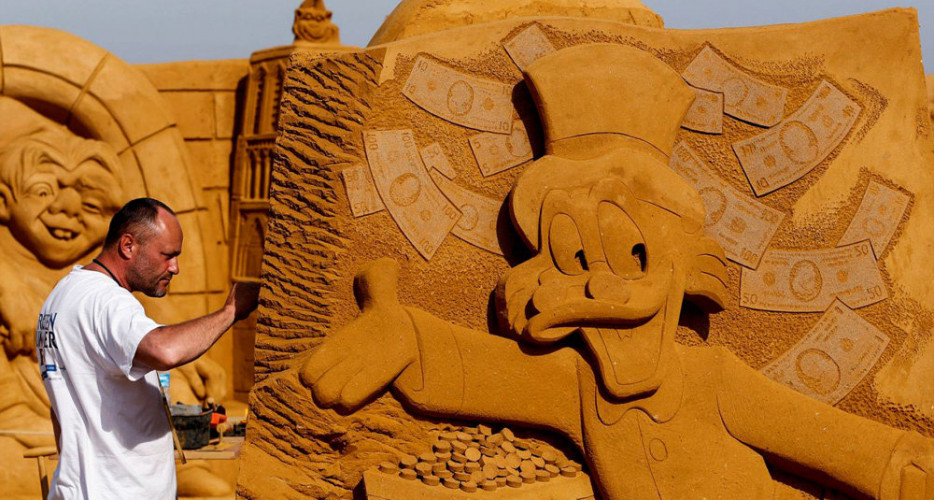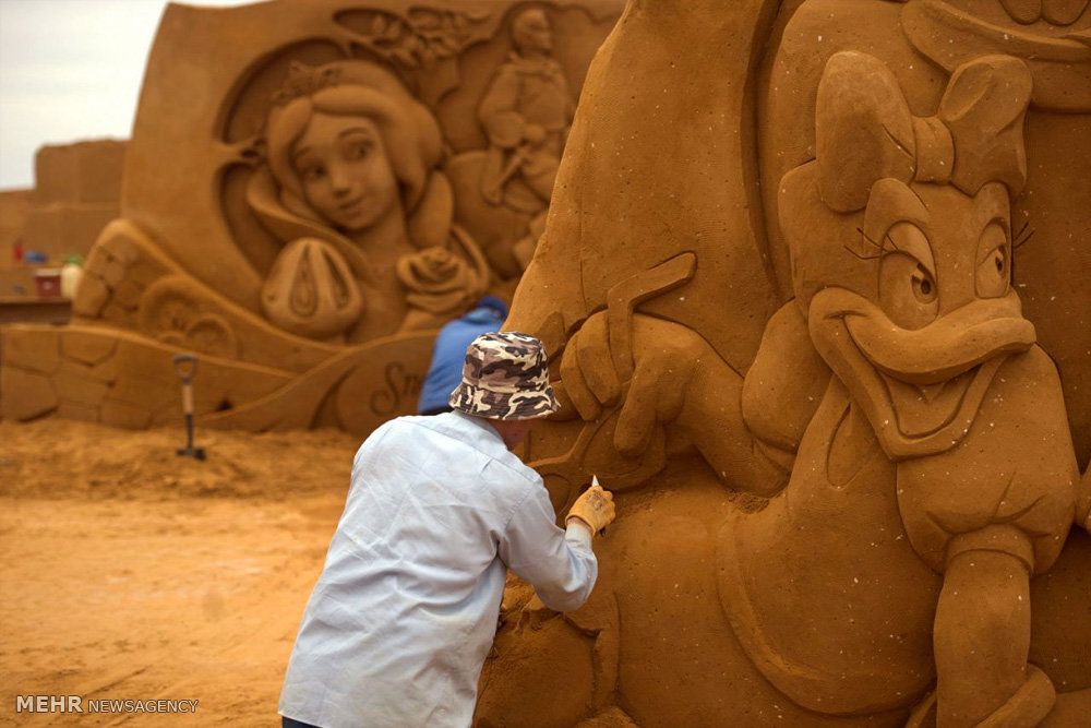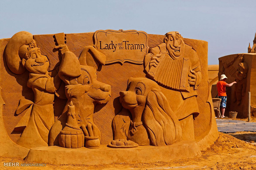 لە پێشانگای پەیكەرە لمییەكانی شاری ئۆستەندی بەلجیكا، هونەرمەندان بە لم پەیكەری كەسایەتییە بەناوبانگە كارتۆنییەكان دروست دەكەن.