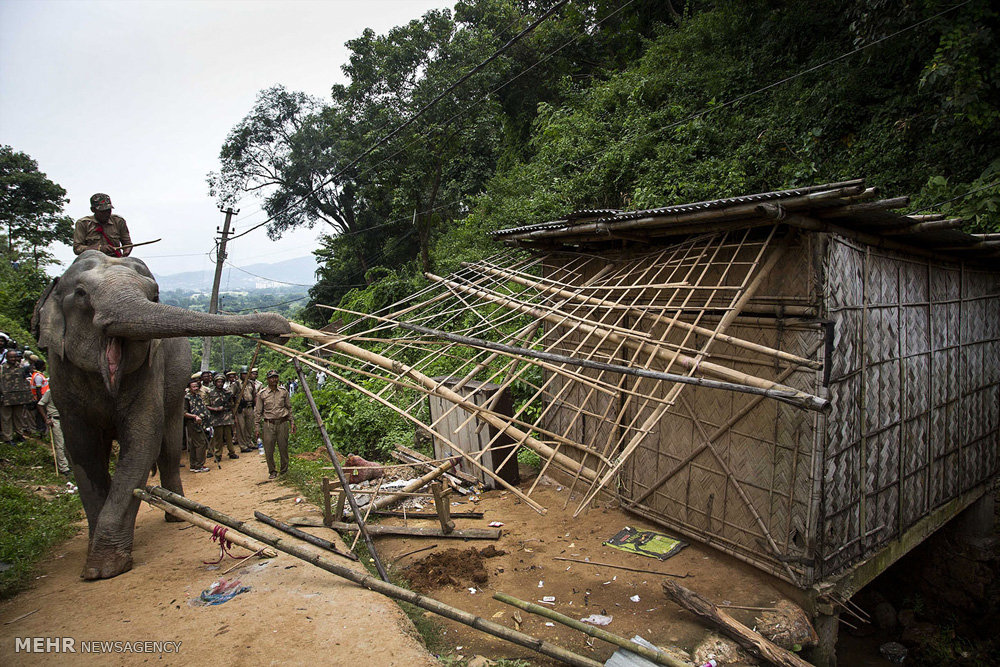 پۆلیسی هیندستان بۆ داڕمانی ئهو بینایانهی به بێ مۆڵهت له باکووری ڕۆژههڵاتی ئهو وڵاته کراونهتهوه، فیل بهکاردەهێنێت.