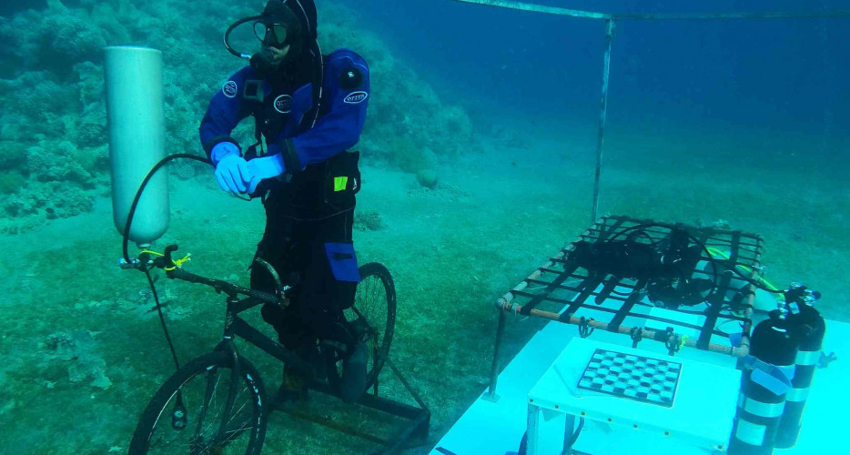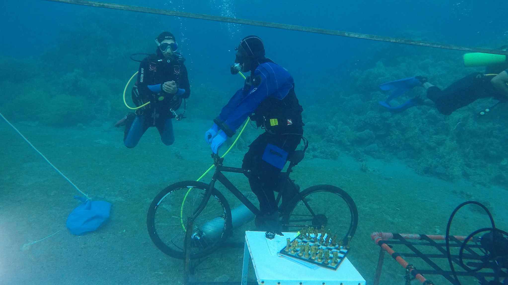 عەدنان بۆ بەسەربردنی ئەو كاتە زۆرەو پاراستنی پلەی گەرمی لەشی، پەنای بۆ یاری شەترەنجو لێخوڕینی پاسكیل دەبرد كە جێگیر كرابوون بە زەویی ژێر ئاوەكەوە.