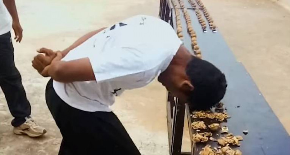 گەنجێكی هندی ژمارەی پێوانەیی تۆماركرد لە شكاندنی گوێز بەكەللە.