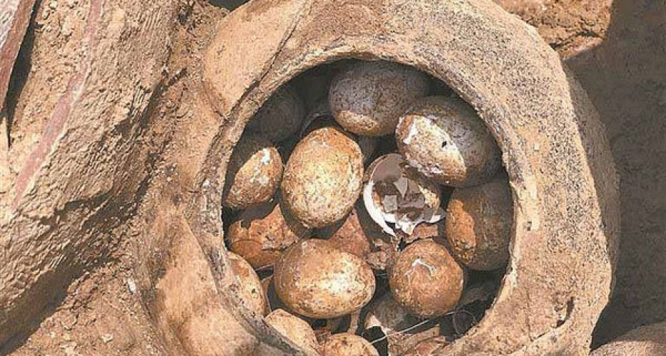 شوێنەوارناسانی چینی گۆزەیەكی پڕ لە هێلكەیان دۆزییەوە، كە مێژووەكەی بۆ 2 هەزارو 500 ساڵ لەمەوبەر دەگەڕێتەوە.