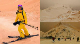 بە وێنەو ڤیدیۆ؛ بەفرێكی پرتەقاڵی ڕۆژهەڵاتی ئەوروپای داپۆشیوە