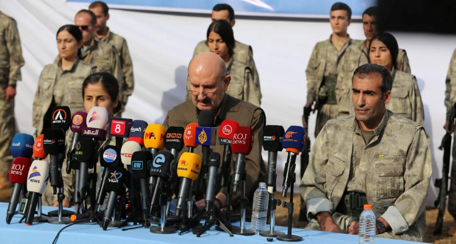 بەشێك لەو گەریلایانەی كە لە ماوەى ڕابردوودا لە سنوورى تورکیا كشاونەتەوە، لە كاتی كۆنگرە ڕۆژنامەوانییەكەى ئەمڕۆدا ئامادە بوون. پەكەكە ڕایگەیاند "لەو سەنگەرانەی ناوچە سنوورییەكانیشدا كە ئەگەری پێكدانان و هەر ئەگەرێكی نەخوازراویان لەسەرە، ڕێوشوێنی هاوشێوە و سازەندانە گیراونەتە بەر".