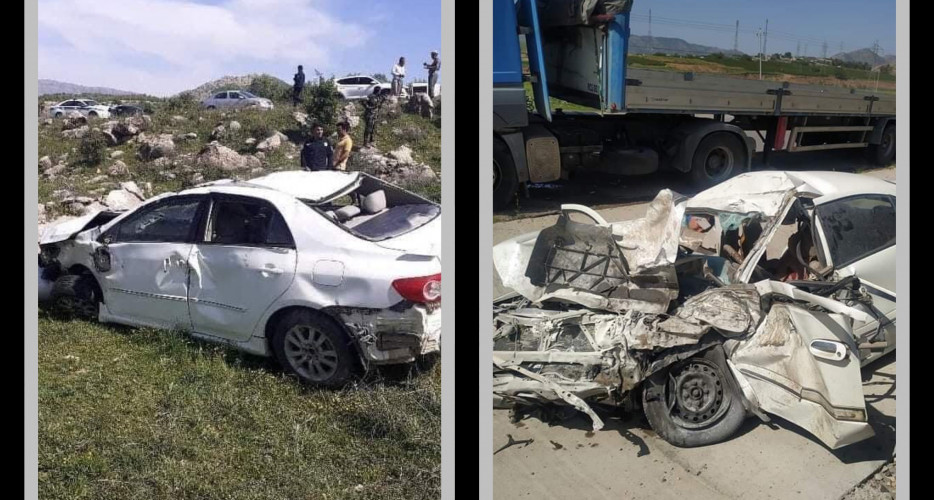 ئەمڕۆ ھەینی لە دوو ڕووداوی ھاتووچۆدا ٣ کەس گیانیان لەدەستدا کە دوانیان ھاوسەری یەکتربوون، ٥ کەسی دیکەش کە ھاوسەرو منداڵی ئەو سێ کەسەن برینداربوون.