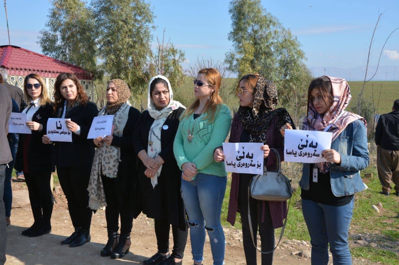 بە دروشمی "بەڵێ بۆ سەروەری یاسا" و "نا بۆ سوڵحی عەشایەری" پێشوازی لە تەرمی سێوان كرا. وێنە؛ پەرەگراف.