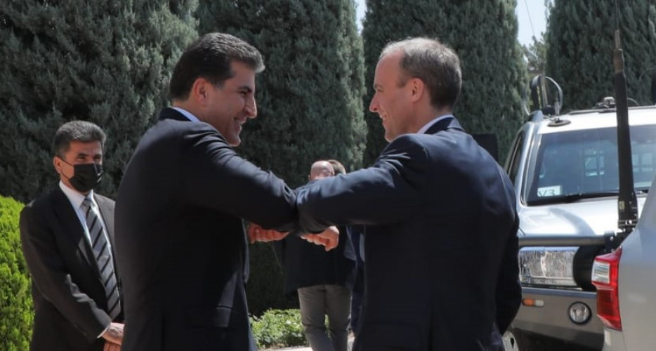 پاش ئەوەی دوێنێ بە سەردانێك گەیشتە بەغدا و لەگەڵ سێ سەرۆكایەتییەكەی عێراق كۆبووەوە، بەیانیی ئەمڕۆ دۆمەنیك ڕاب، وەزیری دەرەوەی بەریتانیا، گەیشتە هەولێر و لەگەڵ نێچیرڤان بارزانیی سەرۆكی هەرێم كۆبووەوە.