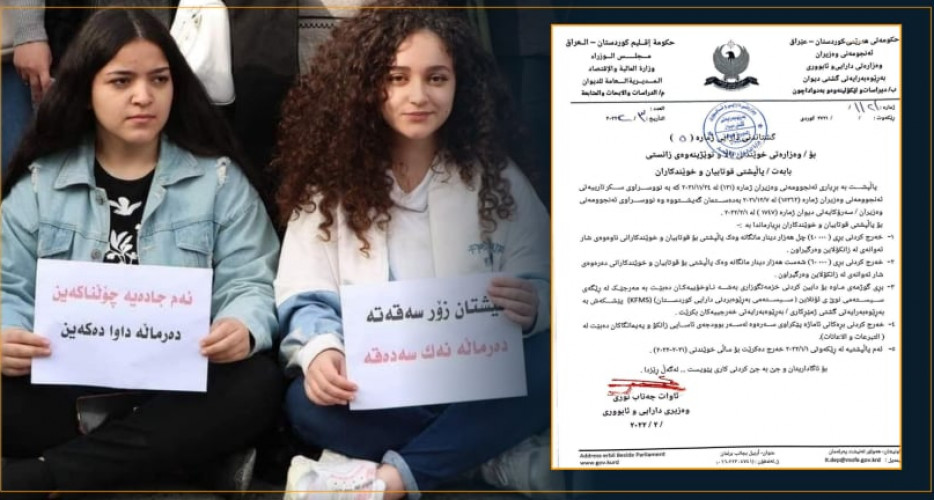 وەزارەتی دارایی بڕیاری دا لە چوارچێوەی ئەو پاڵپشتییە داراییەی كە پێشتر ئەنجوومەنی وەزیران بڕیاری لەسەر خەرجكردنی دابوو، مانگانە 40 هەزار دینار بدات بە خوێندكارانی ناوەوەی شار و 60 هەزار دیناریش بدات بە خوێندكارانی دەرەوەی شاری زانكۆ و پەیمانگاكان.