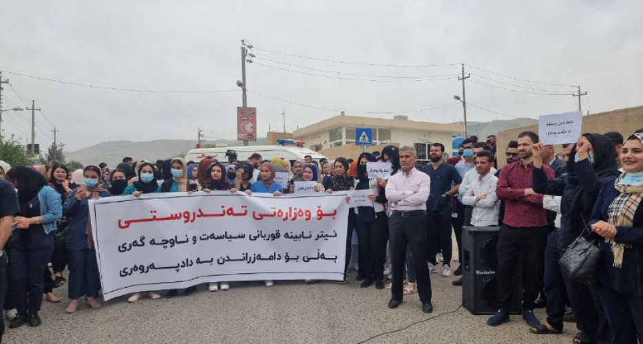 كارمەندانی خۆبەخشی تەندروستی و دەرچووانی دانەمەزراوی ئەو كەرتە لە شاری سلێمانی گردبوونەوەیان دژی نادادپەروەی لە دامەزراندندا ئەنجام دا و دەڵێن "لە هەولێر و دهۆك دامەزراندن بە نهێنی دەكرێت و وەزارەتی تەندروستی سلێمانیی بێبەش كردووە".