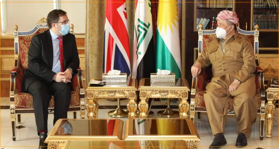 ئەو وتانەی بارزانی لە میانی كۆبوونەوەی ئەمڕۆیدا بووە لەگەڵ باڵیۆزی بەریتانیا لە عێراق، كە بارەگای بارزانی دەڵێت "هەنگاوەكانی ناو پڕۆسەی سیاسیی عێراق و تەحەددیات و ئاستەنگەكانی بەردەم پێكهێنانی حكومەتی نوێ"یان تاوتوێ كردووە.