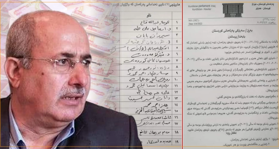 یاداشتێكی 75 لاپەڕەیی بە واژووی 19 پەرلەمانتار بۆ پرساندنی وەزیری دارایی پێشكەش كرا