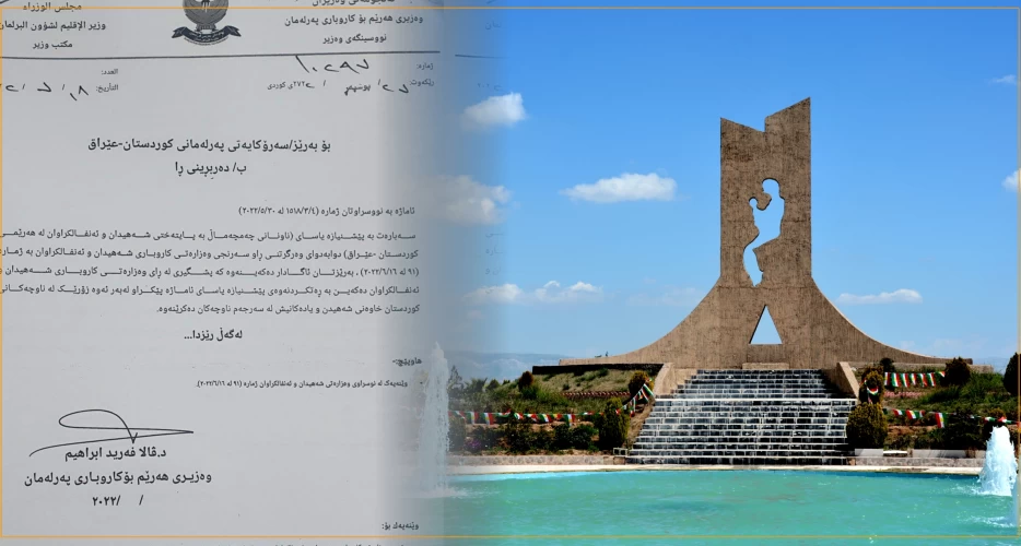 لە نووسراوەكەدا كە ئاراستەی سەرۆكایەتیی پەرلەمان كراوە، هاتووە "دوابەدوای وەرگرتنی ڕا و سەرنجی وەزارەتی كاروباری شەهیدان و ئەنفالكراوان بە ژمارە (91) لە 16-6-2022، بەڕێزتان ئاگادار دەكەینەوە كە پشتگیری لە ڕای وەزارەتی كاروباری شەهیدان و ئەنفالكراوان دەكەین بە ڕەتكردنەوەی پێشنیازەیاسای ئاماژەپێكراو".
