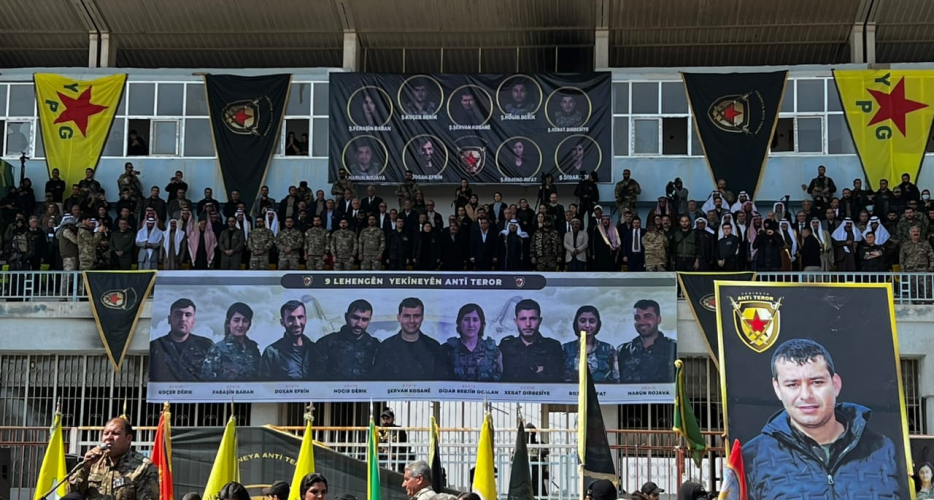 لەشاری حەسەکە لە ڕۆژئاوای کوردستان، مەراسیمێکی سەربازی و جەماوەری ڕێکخرا بۆ بەخاکسپاردنی تەرمی ئەو ٩ شەڕڤانەی هەسەدە کە لە ڕووداوی کەوتنەخوارەوەی هەلیکۆپتەرەکانیان لە دهۆک گیانیان لەدەستدا.