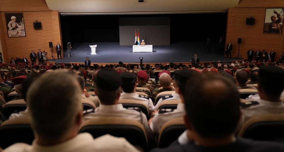 بانگەشەی پێشوەختە؛ بارزانی لەگەڵ ئەفسەر و پلەدارانی پێشمەرگە و دەزگا ئەمنییەكان باسی ھەڵبژاردن دەکات