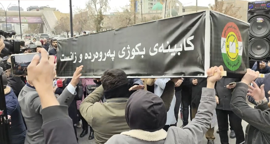 هەرلە خۆپیشاندانەکەدا تابلۆی حکومەتی هەرێم خرایەناو "زبڵدان و تابووت"، ئەوەش وەک ناڕەزاییەکی تووندی مووچەخۆران بەرانبەر حکومەت.