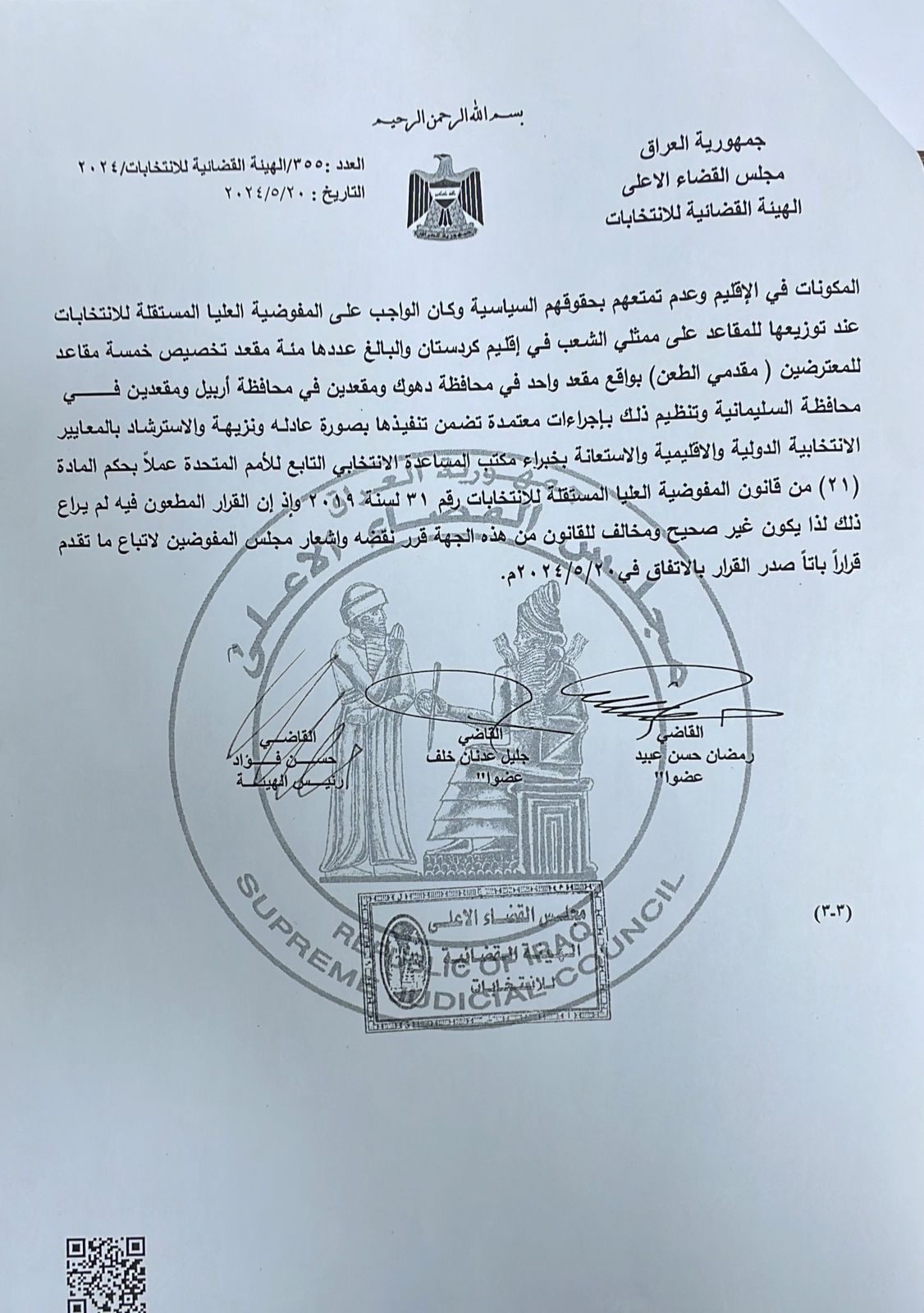 بڕیارەکەی دەستەی دادوەریی هەڵبژاردن