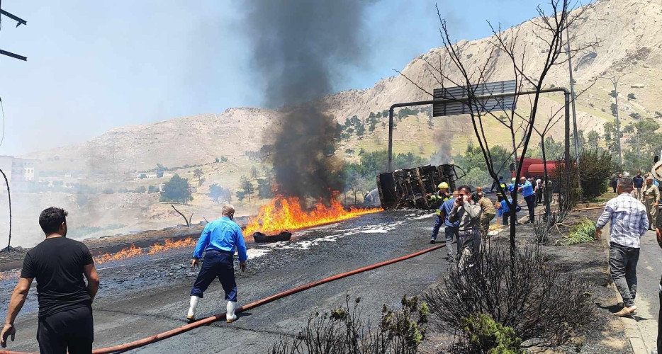 تانکەرێکی گواستنەوەی سووتەمەنی لە نزیک تونێلی دەربەندیخان گڕی گرت و دوکەڵێکی ڕەش شارەکەی داپۆشی.