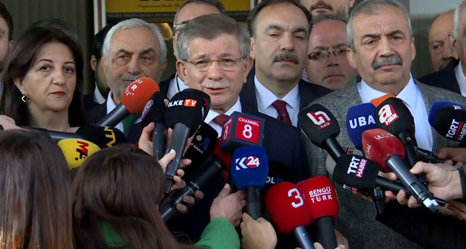 كاتژمێر 11:00ـی پێشنیوەڕۆی ئەمڕۆ دووشەممە 6-1-2025، شاندی پارتی یەكسانی و دیموكراتیی گەلان (دەمپارتی) كە لە ئەحمەد تورك، پەروین بوڵدان و سری سورەیا ئۆندەر پێكهاتووە، بۆ ماوەی زیاتر لە كاتژمێرێك لەگەڵ پارتی ئایندەی توركیا بە سەرۆكایەتیی ئەحمەد داودئۆغلوو كۆبووەوە. دواتریش لە كاتژمێر 01:00ـی پاشنیوەڕۆ لەگەڵ پارتی داد و گەشەپێدان (ئاكپارتی) و لە كاتژمێر 03:30 لەگەڵ پارتی سەعادەت كۆبووەوە.