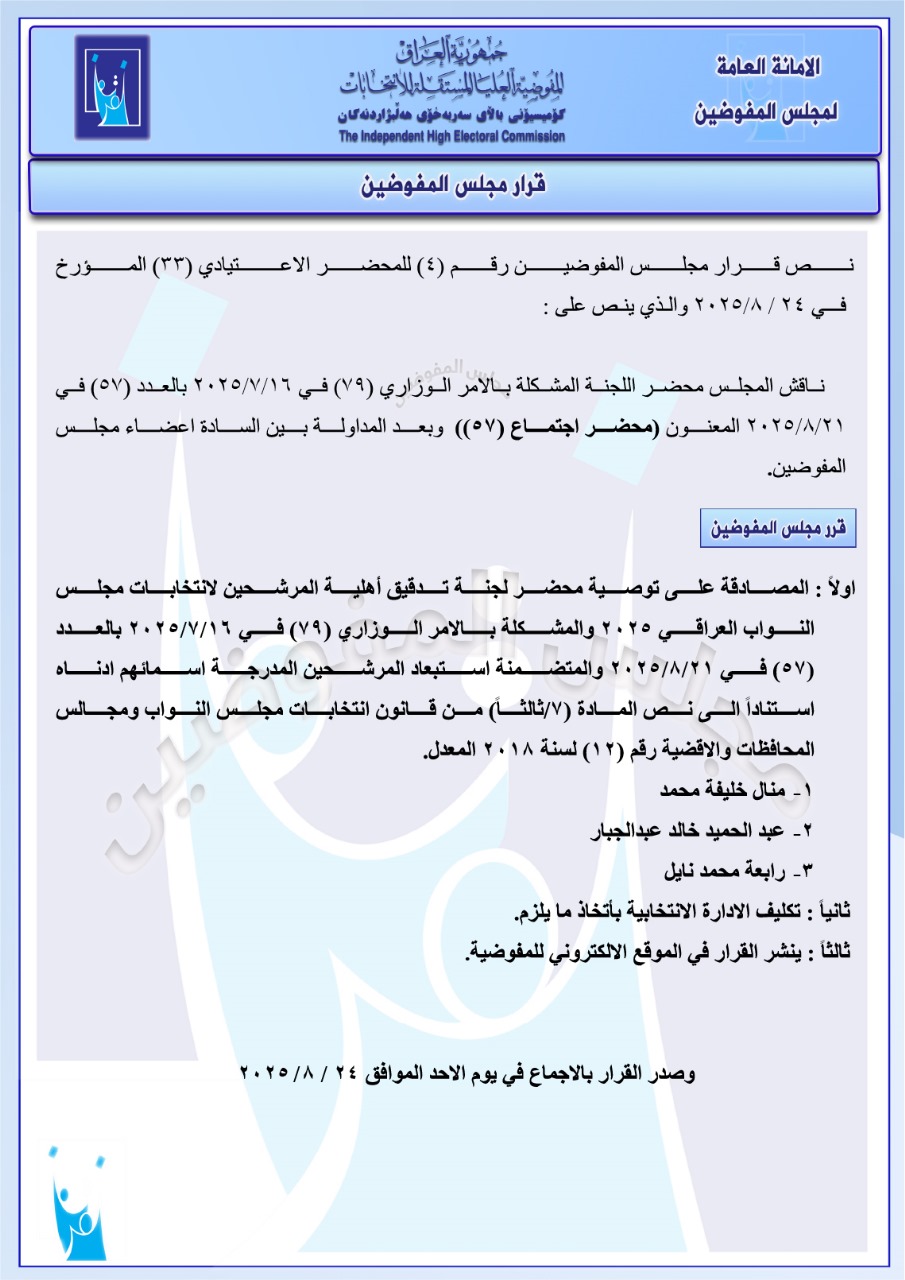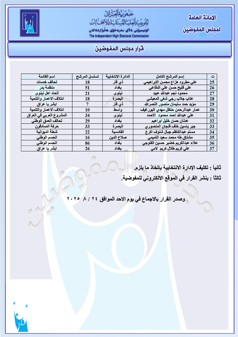 كۆمیسیۆنی هەڵبژاردنەكانی عێراق لە ژمارەیەك بڕیاری جیاوازدا كە ئەمڕۆ دەركراون، 42 كاندیدی دیكەی لە هەڵبژاردنی پەرلەمانی عێراق دوورخستەوە. لە یەك لیستدا كە 37 كاندید هەن، لە سێ بڕیاری دیكەشدا پێنج كاندید.