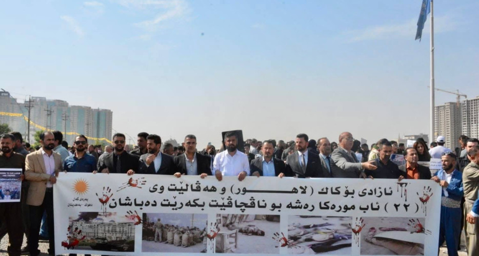 پەرەگراف- بەرەی گەل لەبەردەم نووسینگەی نەتەوە یەكگرتووەكان لە شاری هەولێر گردبوونەوەی دژی ڕووداوەكەی 22ـی ئاب ئەنجام دا و داوای ئازادكردنی لاهوور شێخ جەنگی و هاوڕێكانی كرد. دەشڵێت "داوا لە لایەنە پەیوەندیدارەكان دەكەین ڕەشبگیری و ڕاوەدونانی ئەندام و لایەنگرانی بەرەی گەل بوەستێنن".