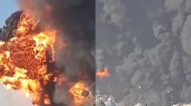 بە ڤیدیۆ؛ بەنزینخانەیەک لە هەولێر ئاگری گرت و تەقییەوە.. ئاگرو دوکەڵێکی چڕ بەرزدەبێتەوە