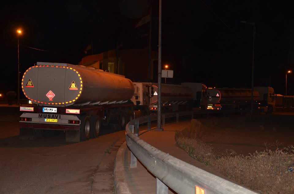تانكەرە بەنزینە ژەهراوییەكان لەكاتی گەڕانەوەیان بۆ ئێران. فۆتۆ: دەروازەی نێودەوڵەتی باشماخ.