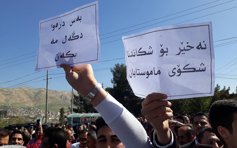 خۆپیشاندەران دروشمی "بڕوخێ دز، بڕوخێ دز"یان دەوتەوەو ڕەخنەی تووندیان لە حكومەتی هەرێم دەگرت كە ناتوانێت مانگانە نیو مووچەش لەكاتی خۆیدا دابەشبكات.