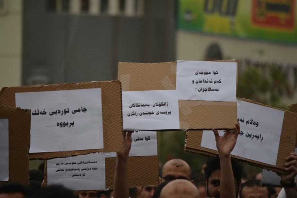 هەندێك لە خۆپیشاندەران داوای ئەوەیان دەكرد ئەگەر حكومەت ناتوانێت مووچە دابەشبكات، با وازبهێنێتو بڕوات، ئەوان توڕەیی خۆیان دەردەبڕی لە خراپیی گوزەرانو پاشكەوتی مووچەكانیانو ئەو گەندەڵیو نادادپەروەرییانەی لە هەرێمی كوردستان هەیە.