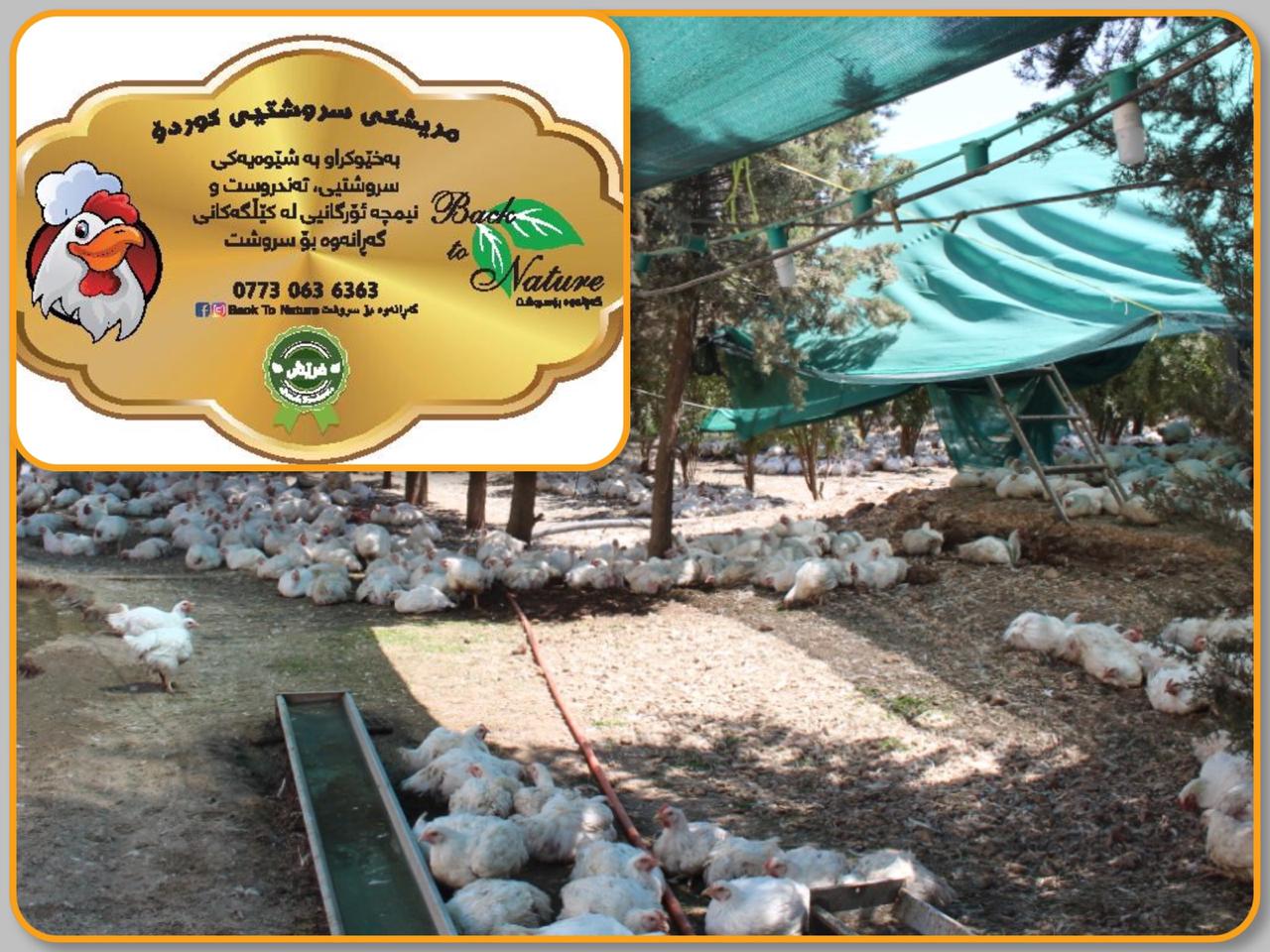 "لە ئێستادا 40 هەزار مریشكمان هەیەو لە پەرەپێدانی بەردەوامداین، ڕۆژانە تەنها سەوزە هەزار دەسكیان پێدەدرێت لەگەڵ تەنو نیوێك پیازو دوو تەن وێنجەو ترشو لیمۆو سیر بە بڕی جیاواز، مریشكەكان بۆن ساردیان نییەو تامیان خۆشەو ئێسقانیان ڕەقەو كوڵاندنی زیاتریان دەوێت لەكاتی لێناندا" بەڕێوەبەری گشتی پڕۆژەی گەڕانەوە بۆ سروشت وای وت.