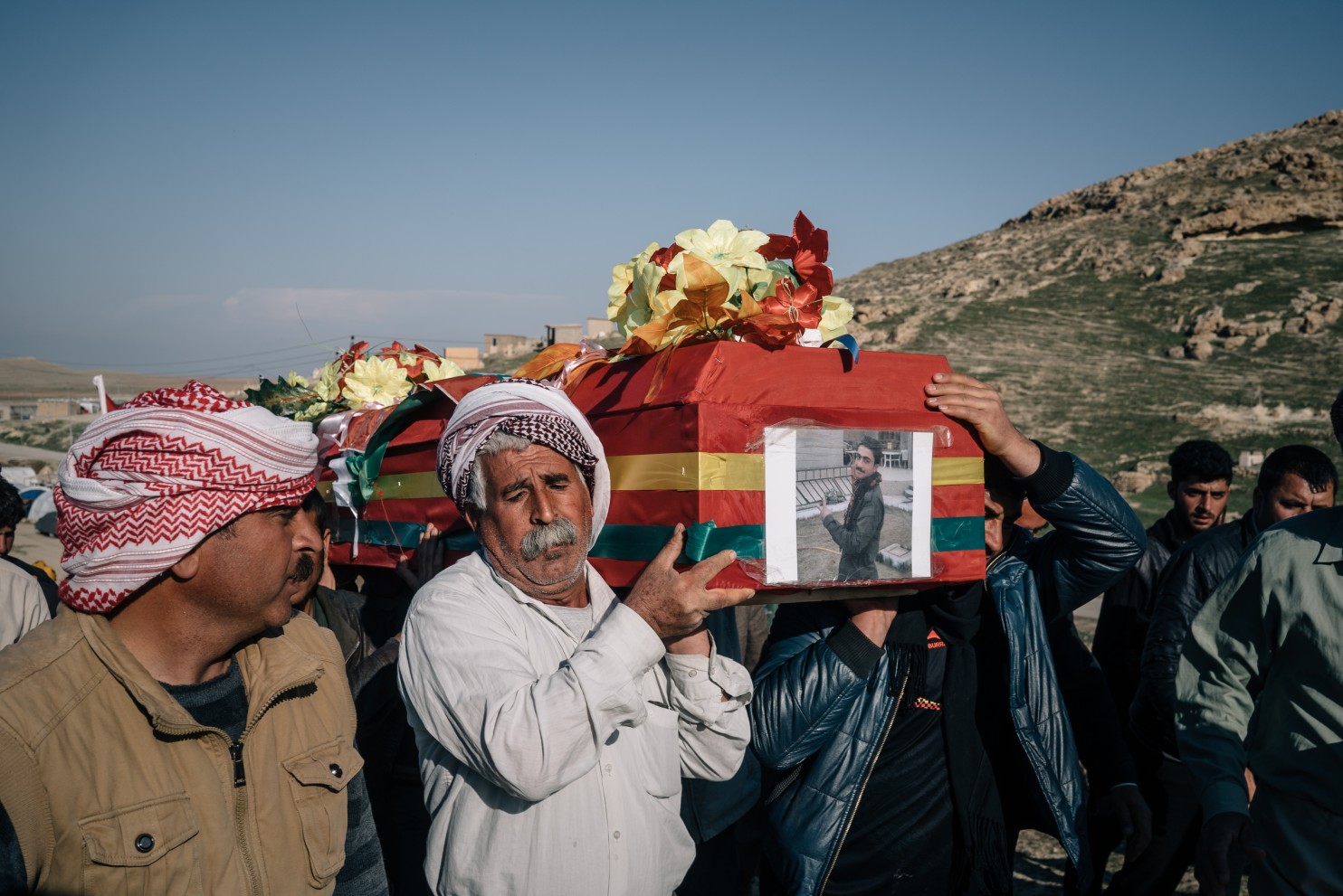 لاشەی سەلام لەلایەن خزمەکانیەوە هەڵگیراوەو لەگۆڕستانێک لەچیای شەنگال بەخاک سپێردرا. فۆتۆ؛ واشنتۆن پۆست.