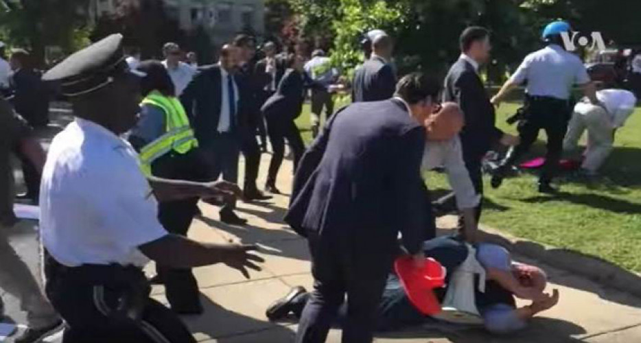 پەلاماری پاسەوانانی سەرۆکی تورکیا بۆ سەر خۆپیشاندەران لە واشنتن.