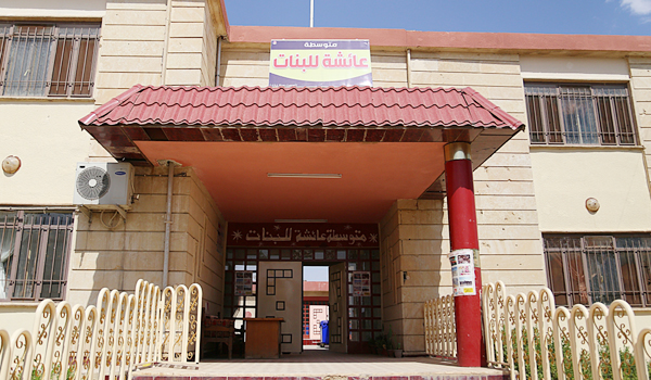 موسڵ، حوزەیرانی 2017، خوێندنگەی عائیشە كە خێزانەكەی مریەم تیایدا دەژین. فۆتۆ: كاروان ساڵحی.
