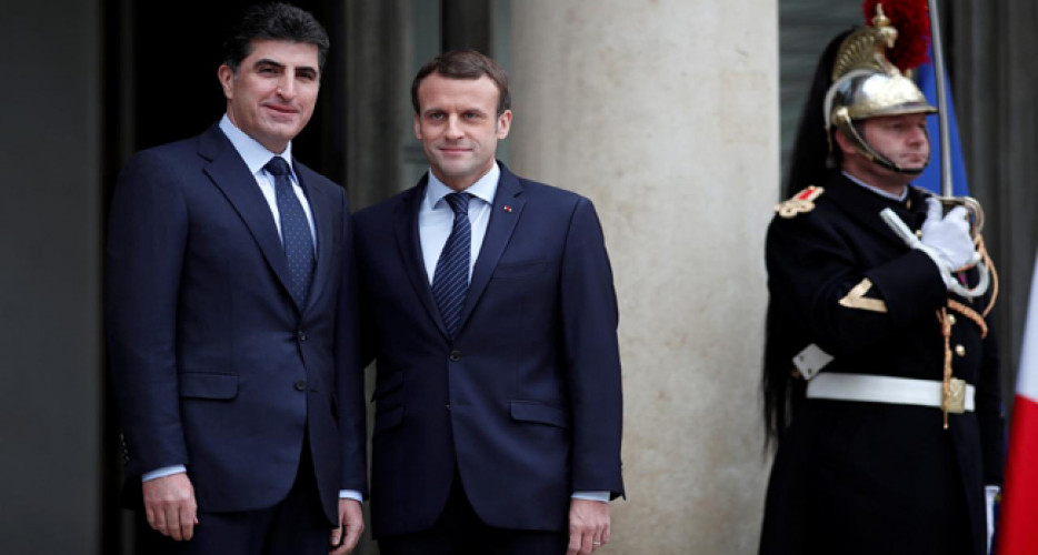 ئیمانوێل ماكرۆن، سەرۆكی فەڕەنسا لە كۆشكی ئێلیزێ پێشوازیی لە شاندێكی باڵای هەرێمی كوردستان بەسەرۆكایەتیی نێچیرڤان بارزانی كردو دوای كۆبوونەوەیان كۆنگرەیەكی ڕۆژنامەوانییان ئەنجامدا.