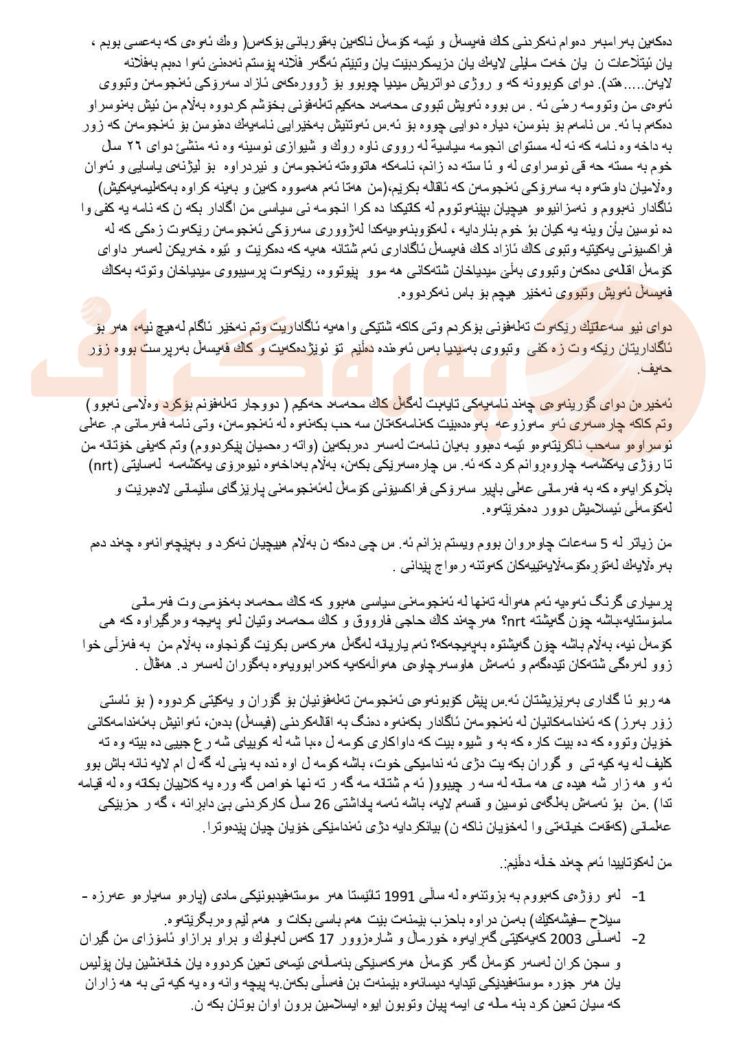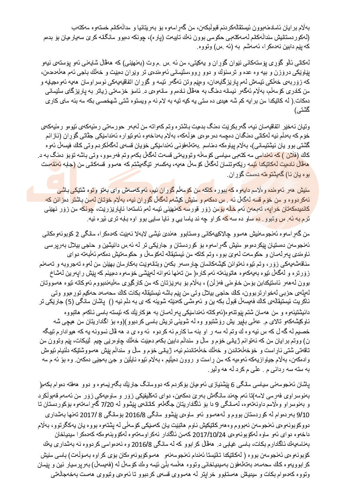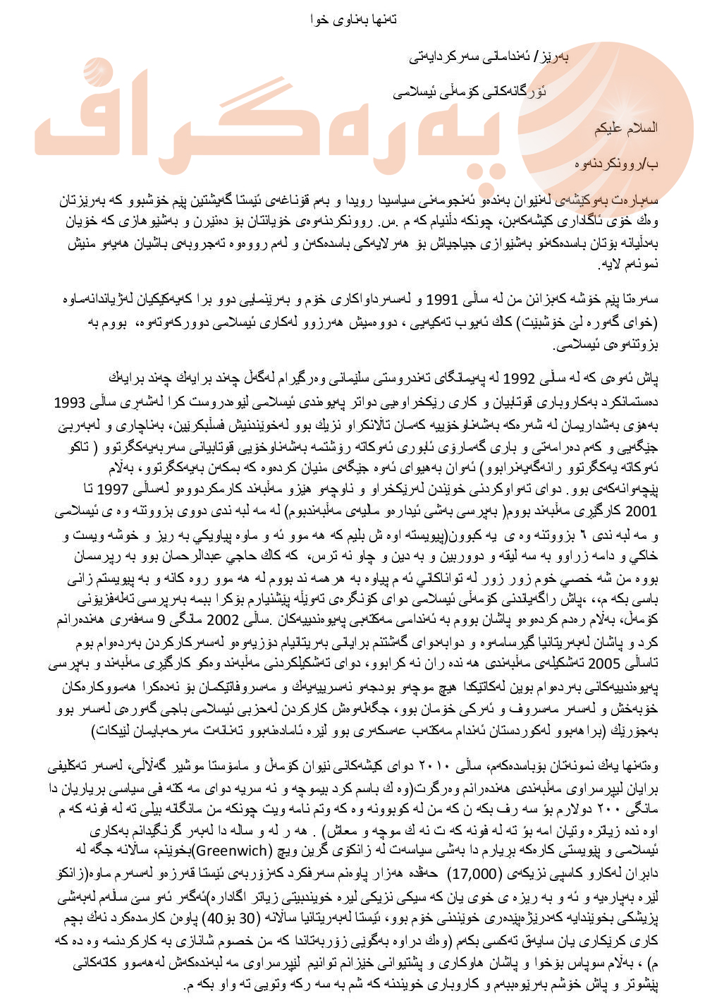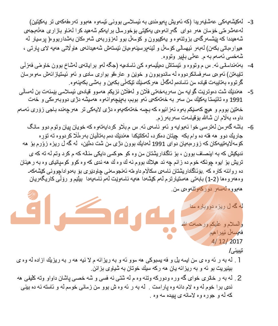 دەقی نامەكەی فەیسەڵ ئیبراهیم