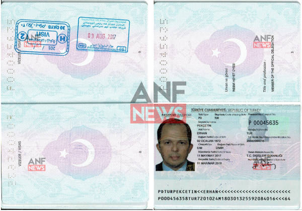 پاسپۆرتی ئەرهان پەكچەتین یەكێك لە دوو میتە دەستگیركراوەكە.