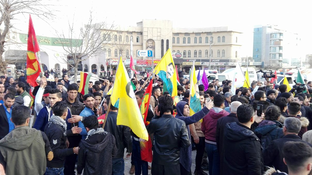 خۆپیشاندان لە سلێمانی دژی هێرشەكانی توركیا بۆسەر عەفرین، 21-1-2018. وێنە؛ پەرەگراف.
