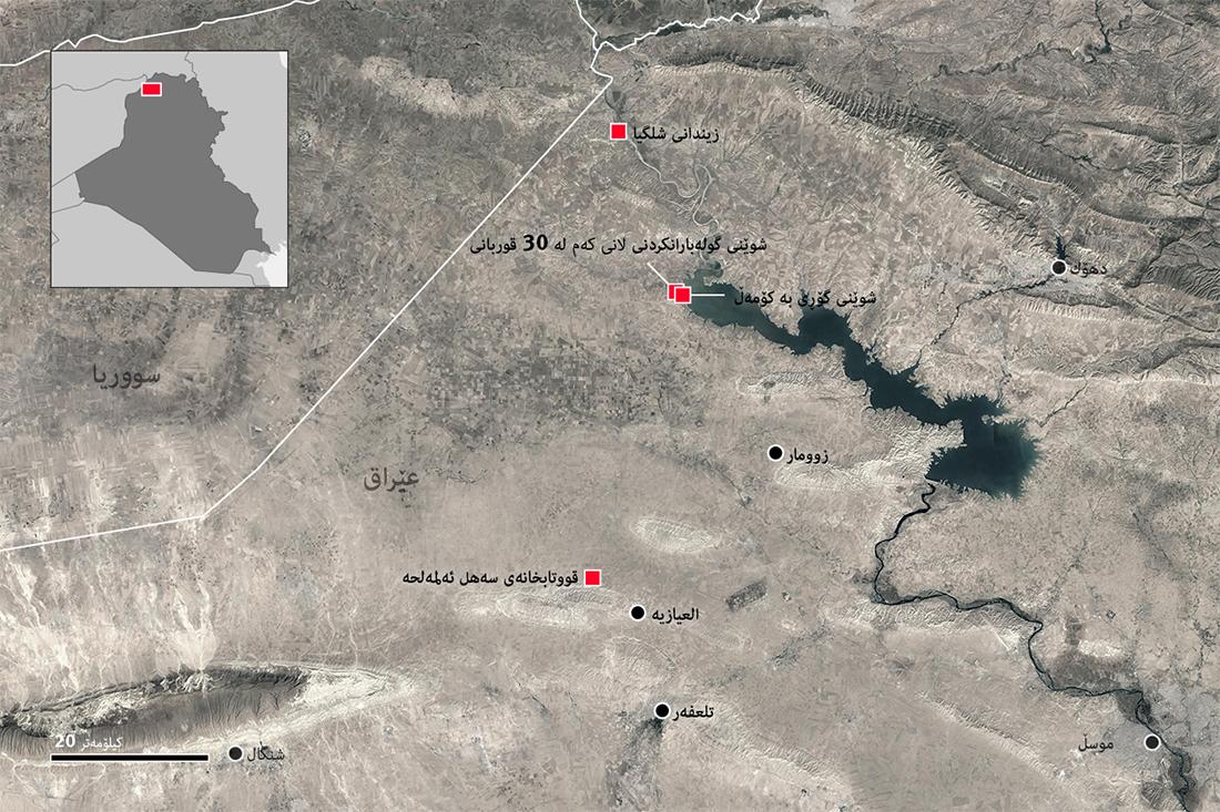 شوێنی گوللەبارانەكە لەسەر نەخشە، سەرچاوە؛ هیومان ڕایتس ۆوچ.