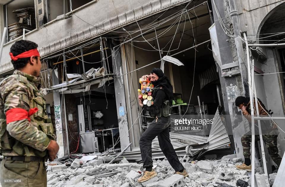 لەگەڵ چوونەناو عەفرین، چەكدارە جیهادییەكان كە توركیا پشتیوانییان دەكات دەستیانكرد بە دزیی‌و تاڵانكردنی ماڵ‌و دوكانەكانی شارەكە، ئەوەش بووە جێی بایەخی ڕاگەیاندنەكانی جیهان.