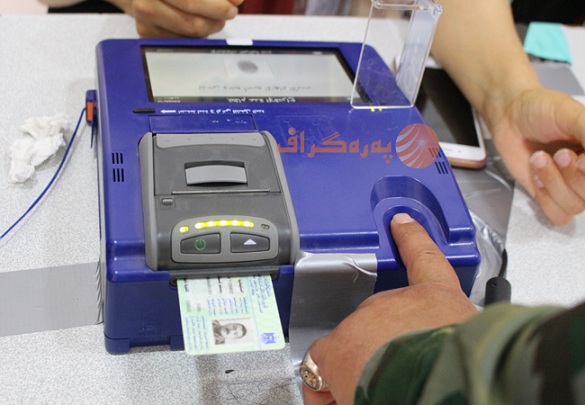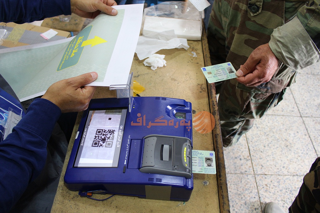 دواتر دەنگدەر دەچێتە وێستگەكەو كارتی دەنگدانەكەی دەداتە كارمەندانی كۆمسیۆن، كارمەندەكان ناوەكەی لە تۆماری دەنگدەران دەدۆزنەوەو لە بەرامبەر ناوەكەی واژۆی پێدەكەن، دواتر كارتەكەی دەخرێتە ئامێرێكی تایبەتەوەو پەنجەمۆری دەنگدەر لەسەر هەمان ئامێر وەردەگیرێت بۆ ناسینەوەی.