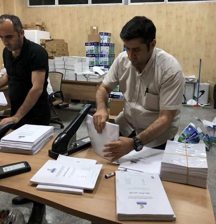 چاپكردنی تۆماری دەنگدەران لە چاپخانەی كۆمسیۆن بۆ دابەشكردنی بەسەر ناوەندەكانی نوێكردنەوەدا/ 7-7-2018. وێنە؛ پەیجی كۆمسیۆن لە فەیسبوك.