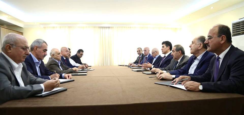 كۆبوونەوەی ئەمڕۆی پارتیو گۆڕان لە ماڵی نەوشیروان مستەفا. وێنە؛ بڕیار نامیق.