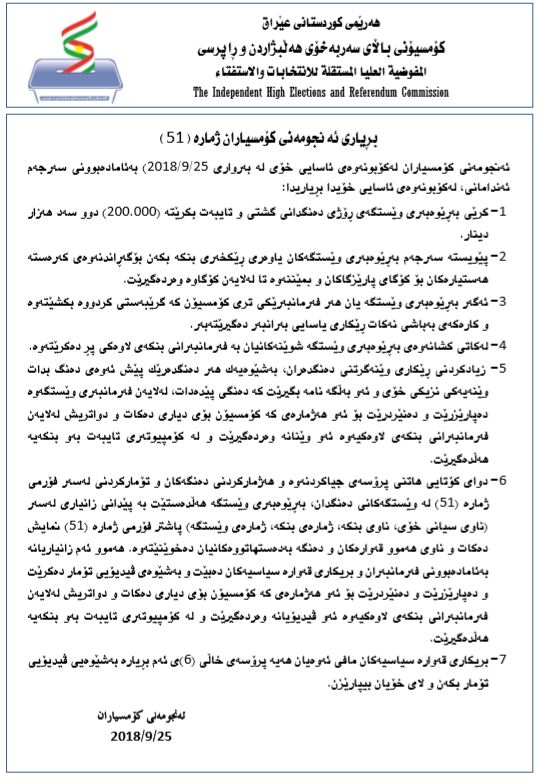 سەرچاوەیەكی باڵا لە كۆمسیۆنی هەڵبژاردن بۆ پەرەگراف ئەوەی خستەڕوو، ئەو ڕێكارانە كە ئەمڕۆ ئەنجومەنی كۆمسیاران لە كۆمسیۆنی باڵای هەڵبژاردن بڕیاری لەسەردا، بە مەبەستی دڵنیایی زیاترە بۆ دەنگدەرانو قەوارە سیاسییەكانو زیادكردنی متمانەیان، هەروەها بۆ ڕێگرییە لە هەر هەوڵێكی ساختەكاری.