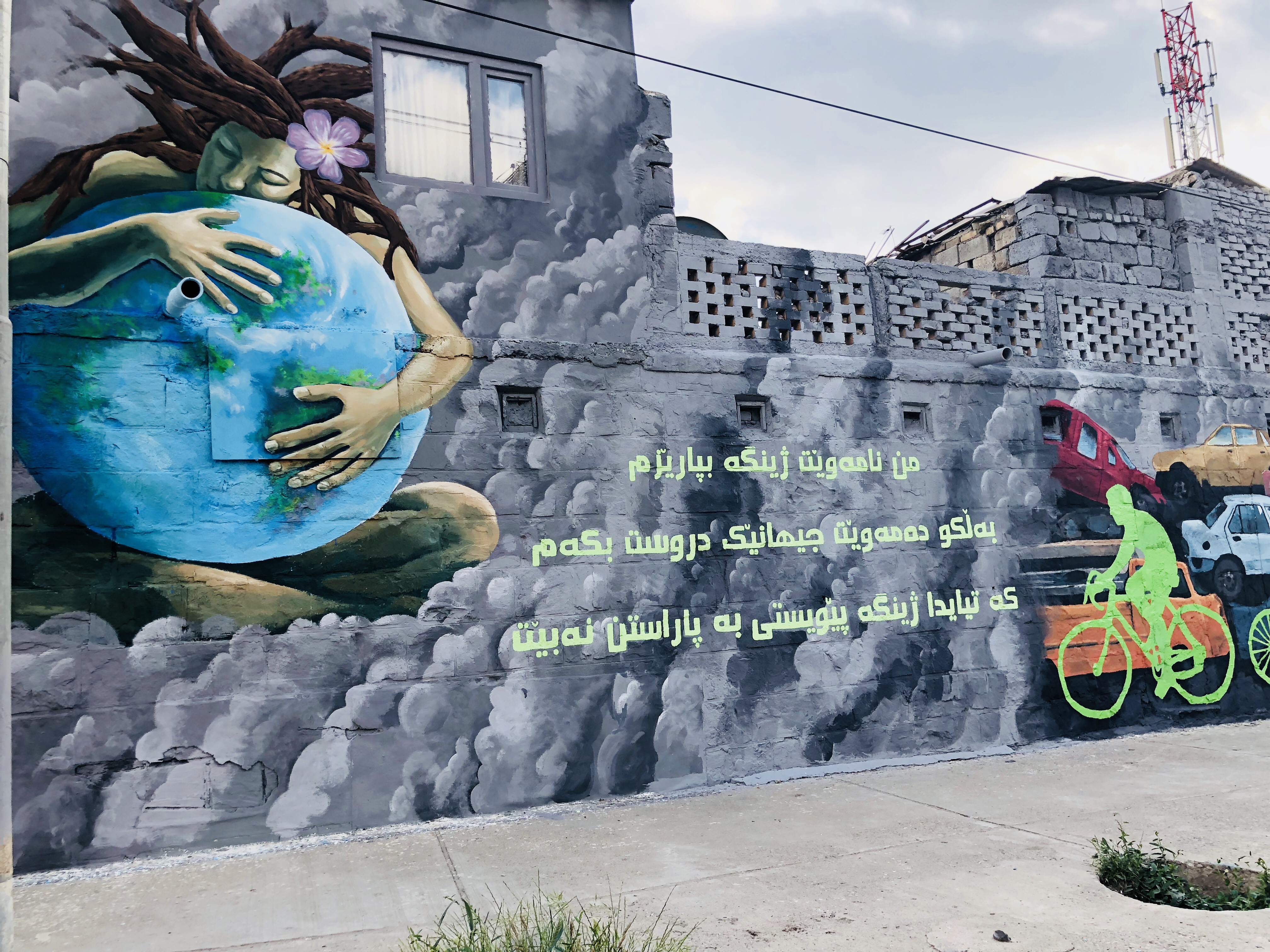 "بەجۆرێك كارمان كردووە تەنها ڕەنگ كردنی دیوارەكە یاخود شێواندنی نەبێتو ویستومانە لەپشتی كارە هونەرییەكەوە پەیامێك هەبێت، ئەوەش پاراستنی ژینگەیە كە گشتگیرەو پەیوەندیدارە بە هەموو كەسێكەوە" مینا وای وت.