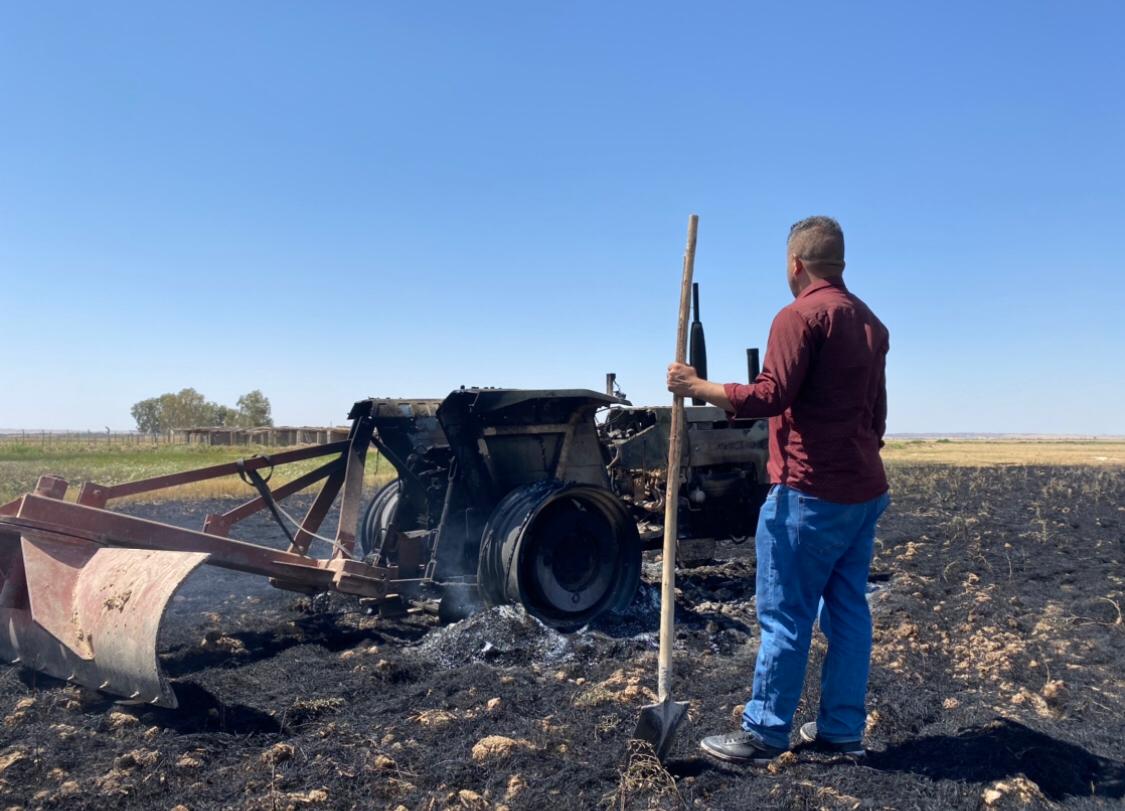 ئەو زەوییە كشتوكاڵییەی لە نزیك گوندی مێخاس كە بورهانی برای ئەكرەمو ئامۆزاكەی تێیدا كوژران، زەوییەكەو سێ تراكتۆر سووتێندران لەلایەن چەكدارەكانەوە. وێنە؛ ئەمیر خانەقینی.