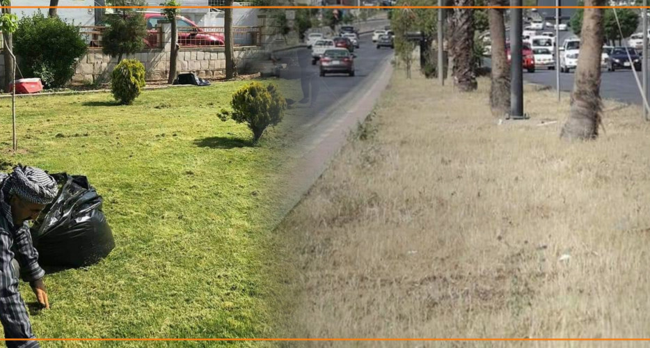 تەنیا باخچەكەی ئەو لە وشكبوندا نییە، بەڵكو بەشێكی زۆر لە سەوزایی و بلوارەكانی شاری سلێمانی بەهۆی نەبونی خزمەت و ئاودانەوە زەرد هەڵگەڕاون.