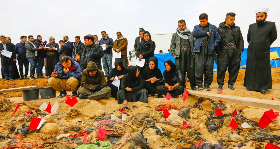 لە شاڵاوەكانی ئەنفال، رژێمی بەعس لە هەشتاكانی سەدەی رابردوودا هەزاران كورد-لە نێویاندا ژن و منداڵ-ی لە ناوچەكانی كوردستانەوە بردە بیابان و ناوچە دورەدەستەكانی باشوری عێراق، لەوێ كوژران و زیندەبەچاڵكران لە دەیان گۆڕی بە كۆمەڵدا، كە هێشتا گەڕان و دۆزینەوەیان بەردەوامە.